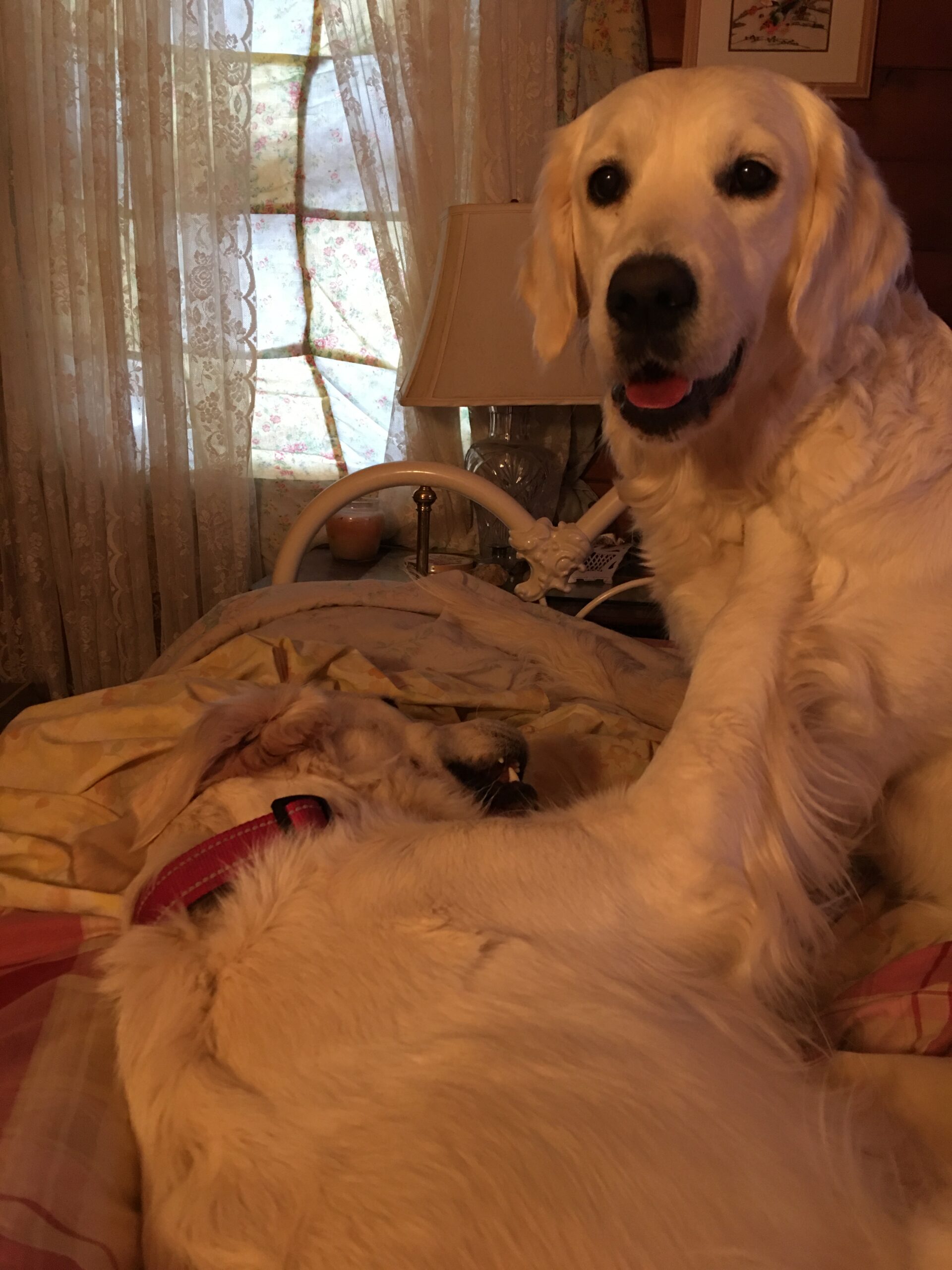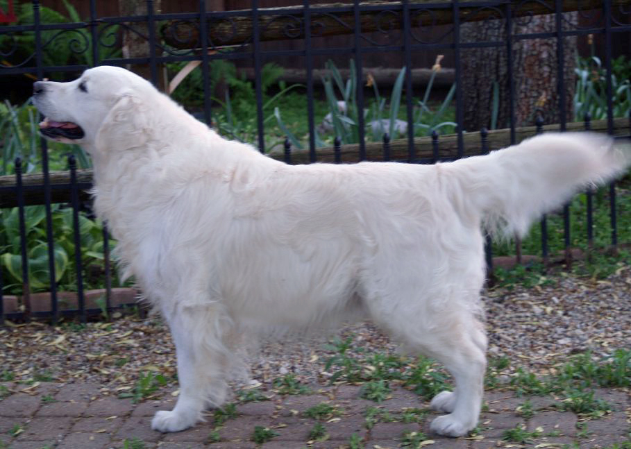 He’s comes from champion lines all through his heritage , and like all our sires and girls , is AKC with all the OFA clearances. He lives with his mom Nancy at Heroes Gold, and is known for his mellow beautiful puppies!